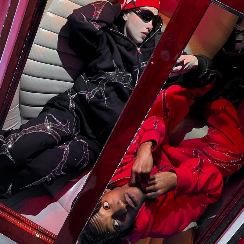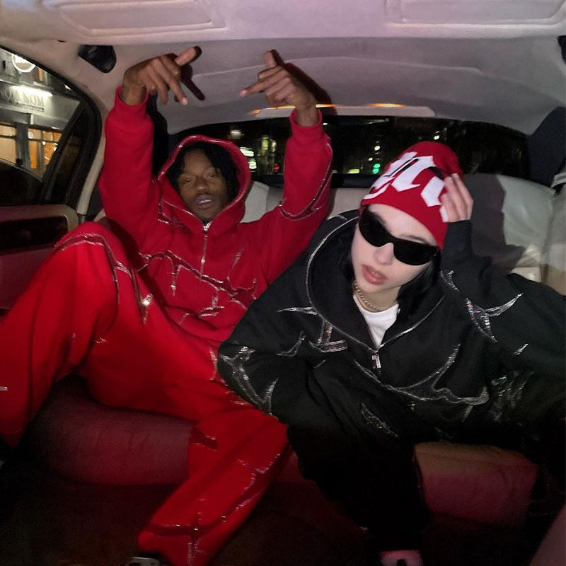 Street Style Hot Drilling Zip Hoodie & Trouser Set – Urban Fashion Tracksuit for Men & Women