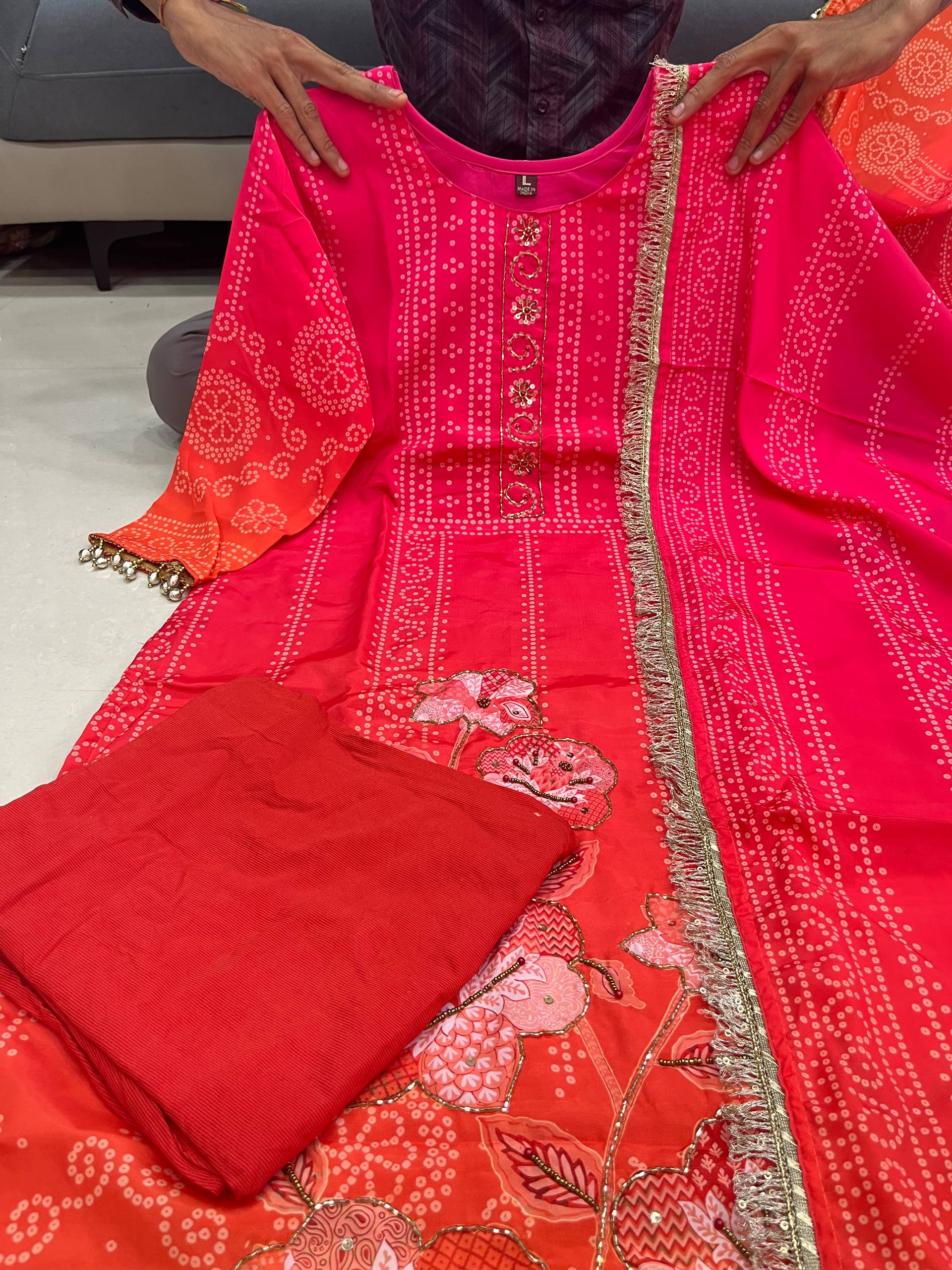 Premium Pure Softy Chinon Silk Kurti Set with Aari & Hand Work – 3-Piece Festive Wear