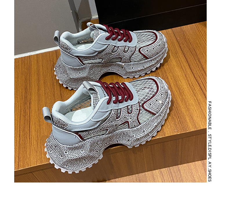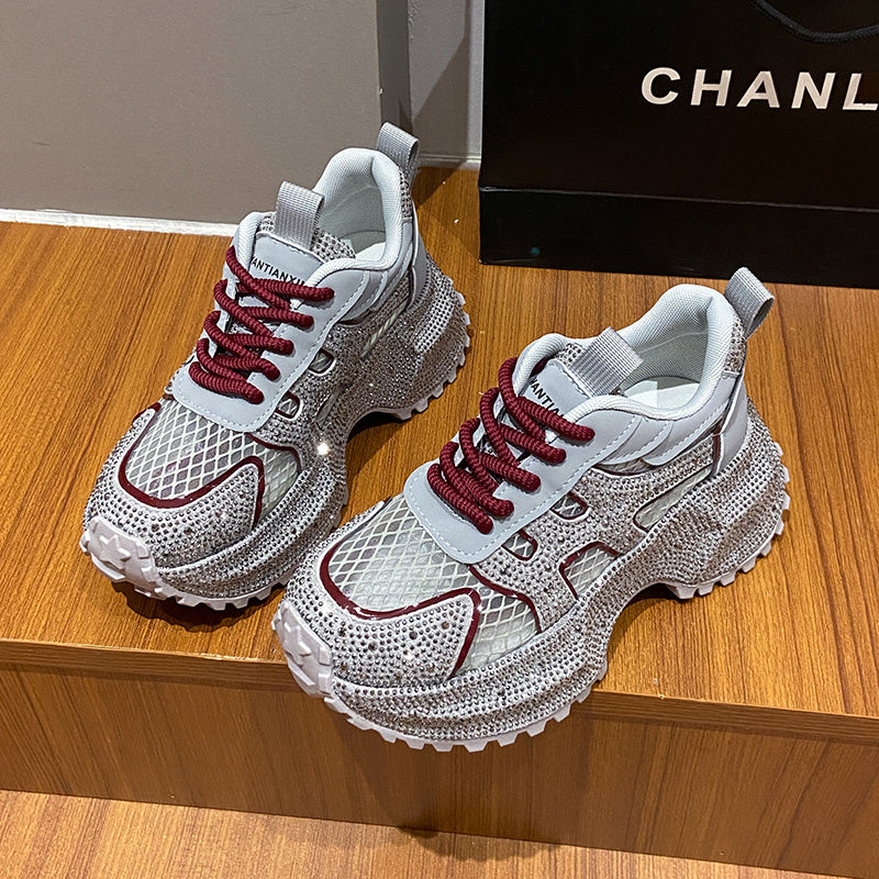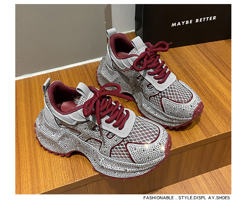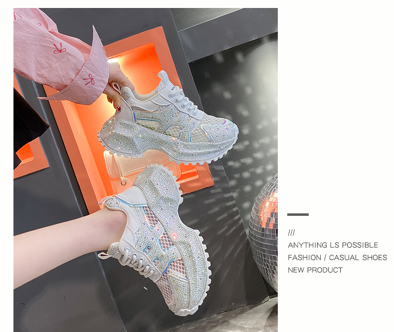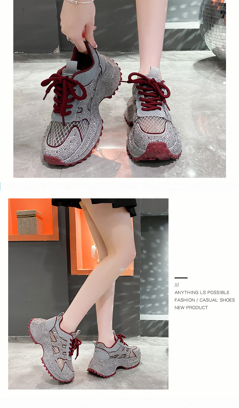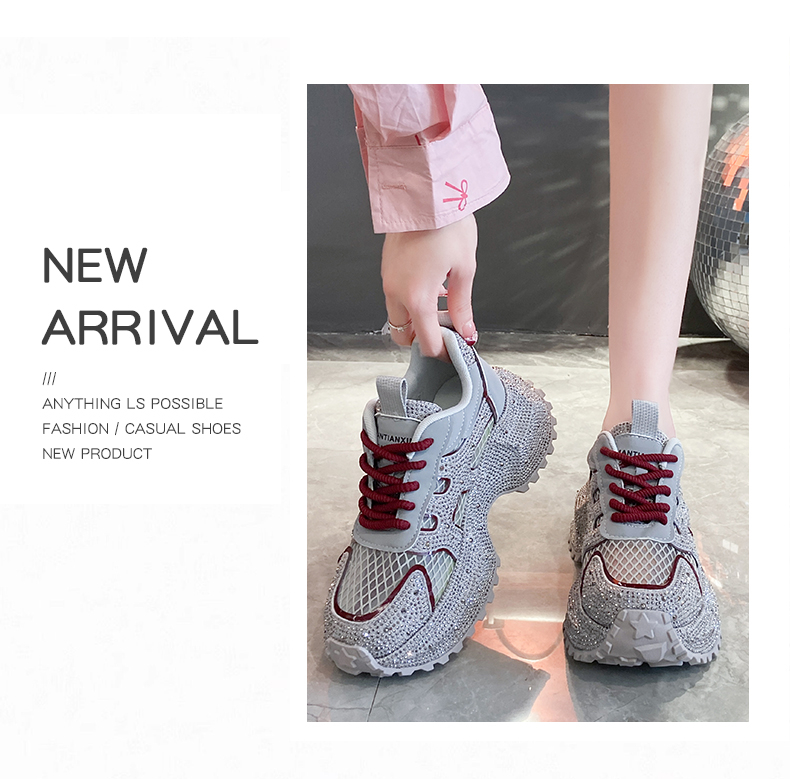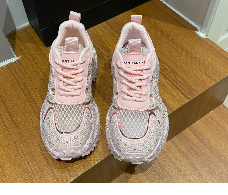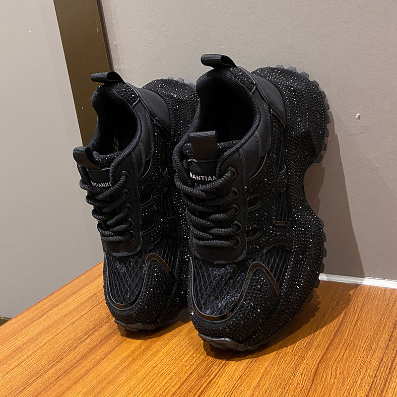 TIANXIU Women’s Chunky Platform Sneakers – Yellow Glitter Sneakers with Rhinestone Accents, Green Trim & Thick White Sole