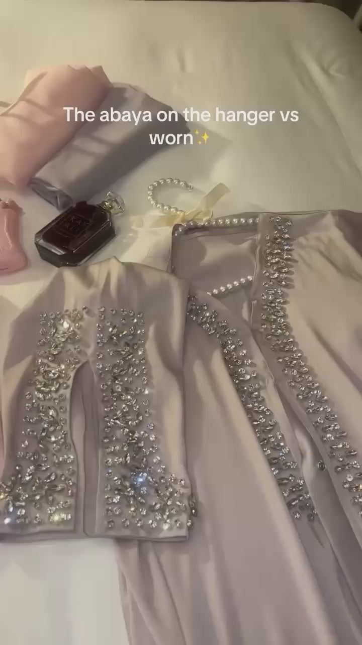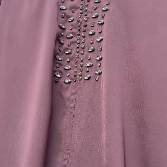 Traditional Abaya for Women – Satin Fabric with Handcrafted Stone Work – Free Black Stole