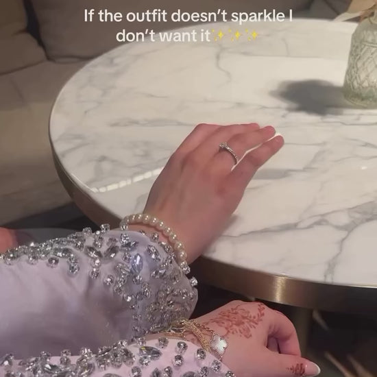 Features sparkling handcrafted stone work on sleeves and chest, perfect for festive occasions.