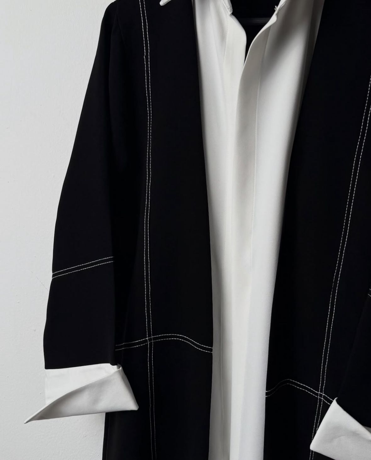 Elegant dual-color combination in white and black with delicate thread work, perfect for college wear or casual festive occasions.