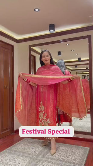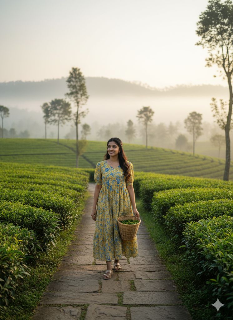 Step into effortless elegance with our Vacation Special Floral Pleated Maxi Dress, crafted from premium Fox Georgette for a soft, flowy feel. The dress features a delightful floral print that starts with dainty scattered blooms on the bodice and transitions into a vibrant garden border at the hem, bursting with shades of pink, yellow, red, blue, and green.
