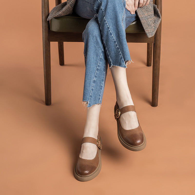 Vintage Mary Jane Women’s Small Leather Shoes with Buckle