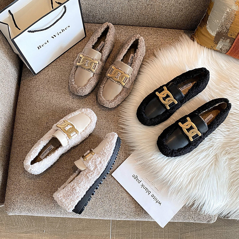 Women’s Thick Soled Ladybird Cotton Shoes – New Autumn Winter Style, Warm Slip-On Casual Flats